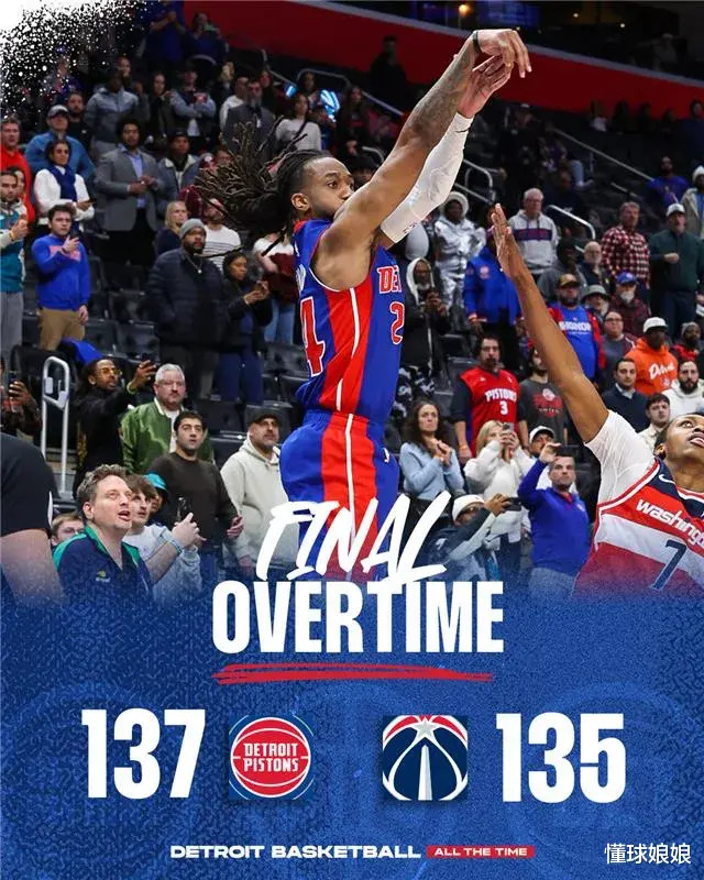今天活塞137-135加时击败了奇才