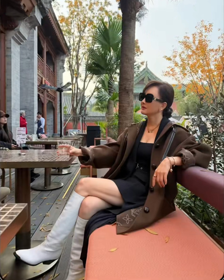 53岁牛莉近照, 穿四万大衣身材火辣如30岁 富商老公给她花钱不手软