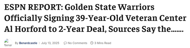 许多人认为,勇士队已与霍福德和梅尔顿达成口头协议,但在管理层在解决受限制自由球员乔纳森·库明加的问题之前,相关签约仍然无法最终敲定。但是就在刚刚,ESPN爆料勇士已经两年合同签下了霍福德。霍福德上赛季效力于波士顿凯尔特人队期间,场均贡献 7.8 分6.3 个篮板和 1.2 次盖帽,三分球命中率高达 41.2%。