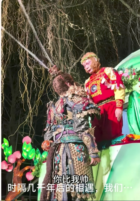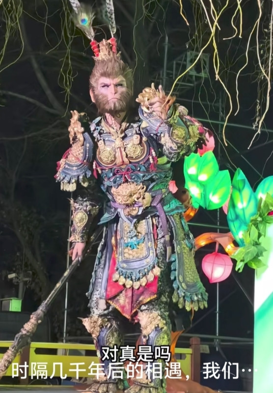 “何方妖孽,幻化此等可笑皮囊?”他睥睨着地上的雪饼猴头套,声音低沉如雷,带着游戏里熟悉的冷硬质感。未等我解释,金箍棒已裹挟着风声呼啸而下——“砰!”一声闷响,那只曾带给无数人童年甜味的雪饼猴头套,瞬间在棒下碎裂成几瓣塑料残骸。人群惊叫着四散退开,手机闪光灯疯狂闪烁。