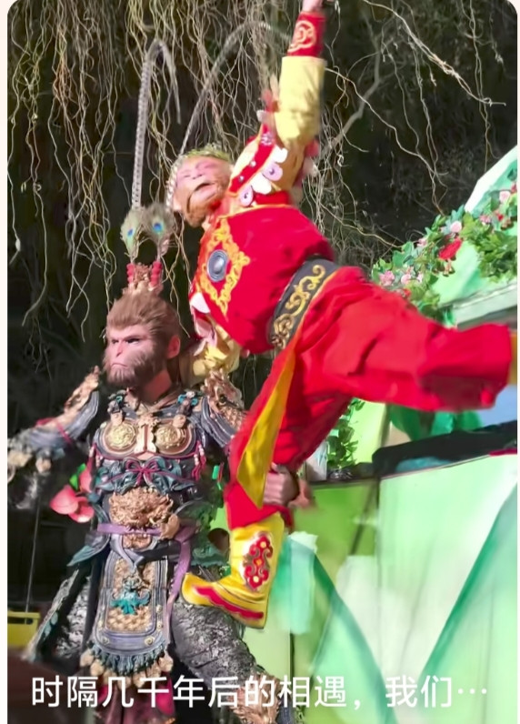 商场巨大的屏幕上,《黑神话》的预告片正播放到悟空孤身走向茫茫大漠的经典镜头。我扛着雪饼猴残躯从屏幕前走过,两个截然不同的猴王身影在此刻的时空奇妙交叠——一个在虚拟世界披荆斩棘,一个在现实尘埃中步履不停。当无数人仰望屏幕中那个震撼世界的东方战神时,也有人将目光投向了我肩头那道荒诞却真实的背影。